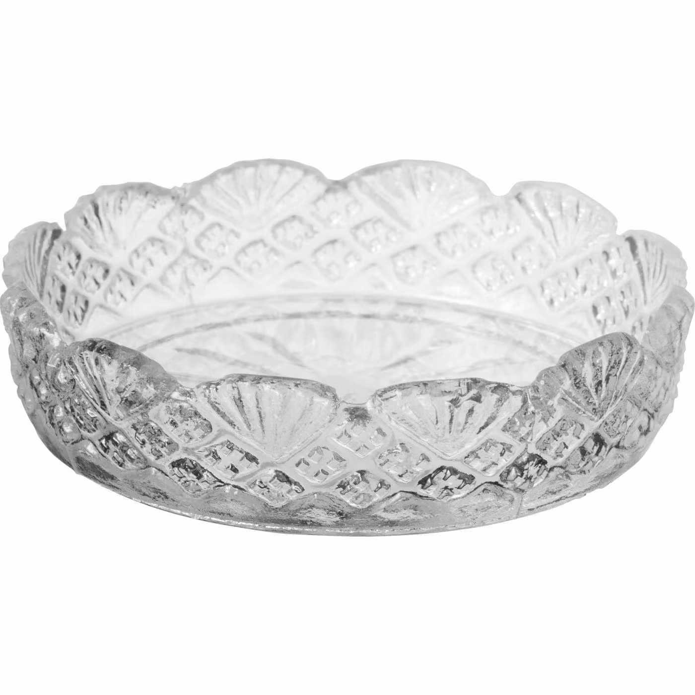 Ett vackert ljusfat i glas med slipat mönster. Som passar fint till både vardag och fest