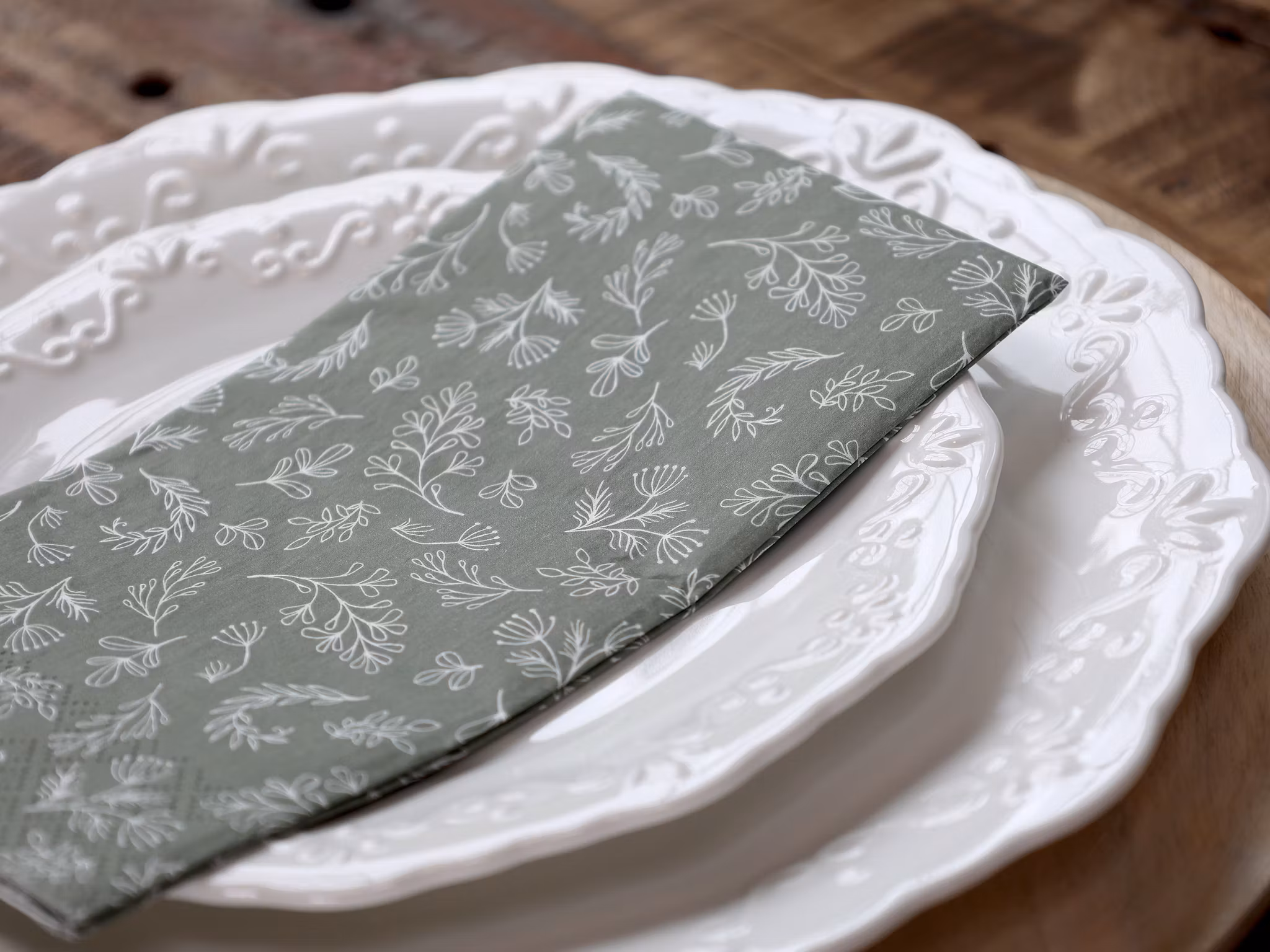 Servett Blad 0 kr 45 kr Duka fint med den här charmiga servetten till middagen eller festen.Storlek: 40x40 cm 16 Pack