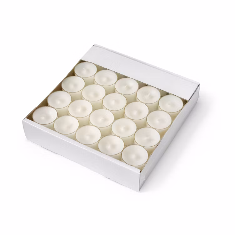 Färg: Vit Brinntid: ca 6 timmar Storlek: 3,8 cm i diameter Höjd: 2 cm Doftfria