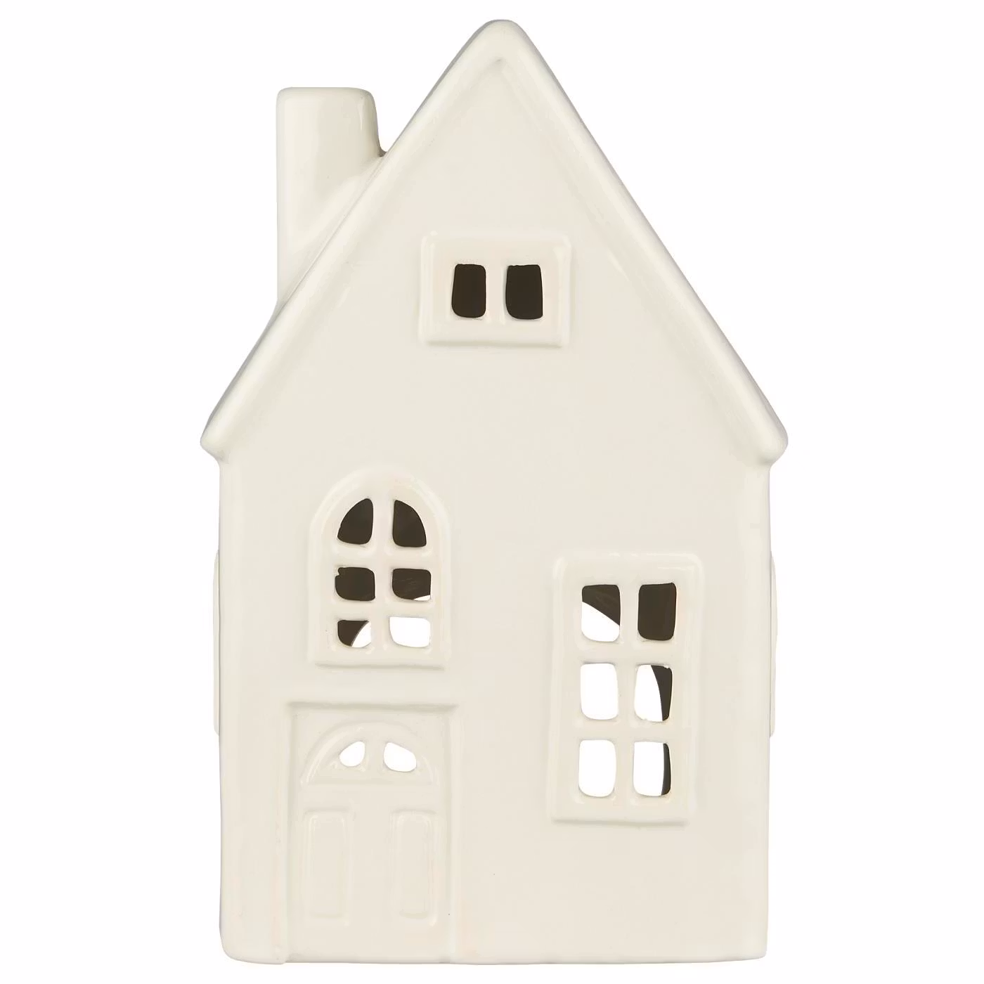 Ett litet gulligt hus i keramik med värlarbetade detaljer. En stämningsfull ljuslykta som sprider ett varmt och mysigt ljus. Finns i flera modeller och är finna att ställa ihop.