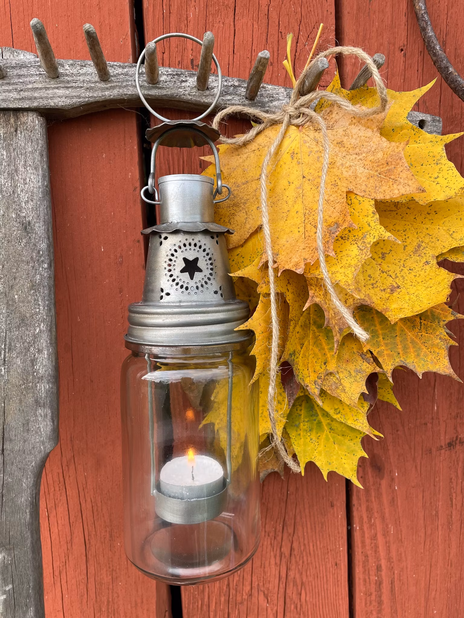 En söt ljuslykta med stjärnmönster med hänginsats för värmeljus.