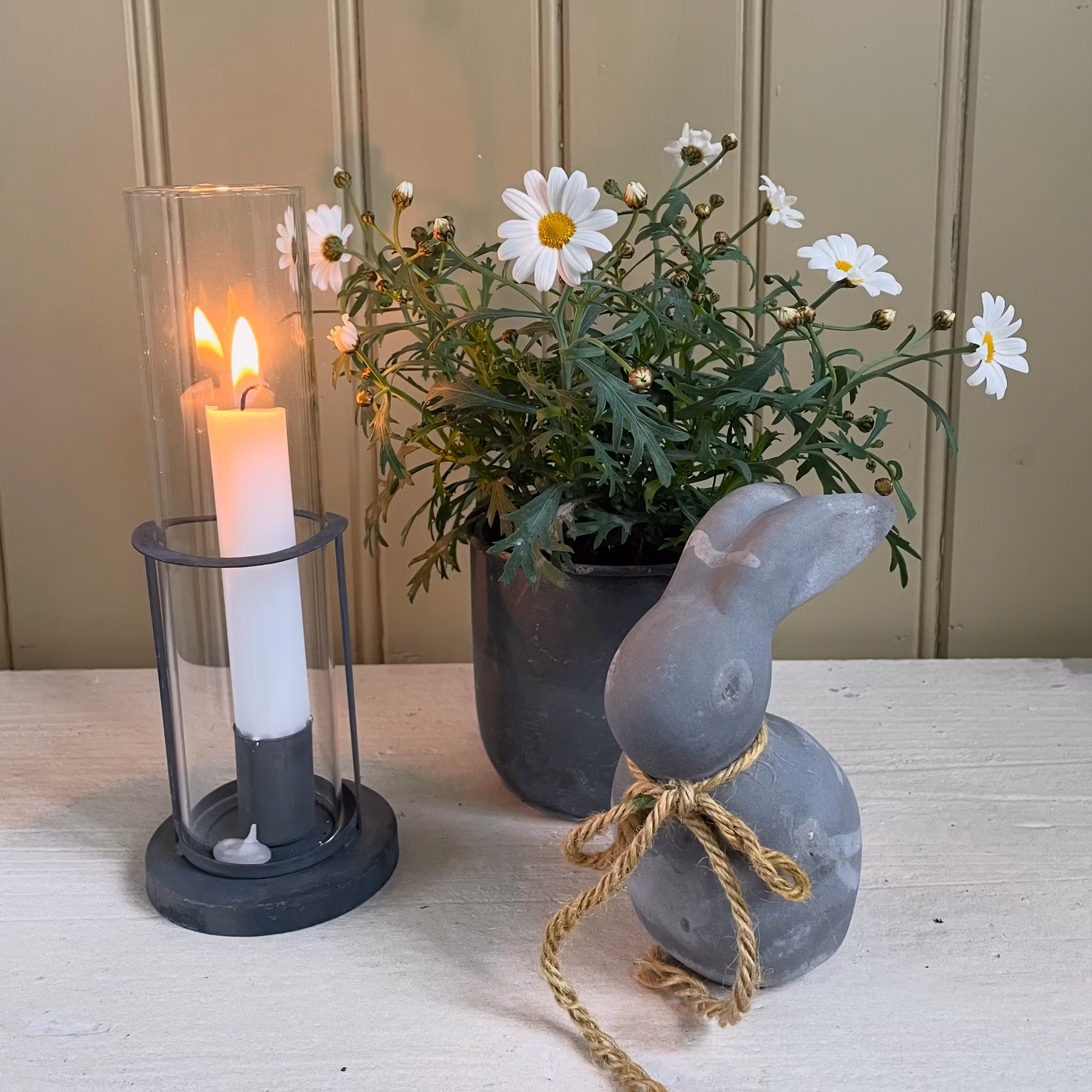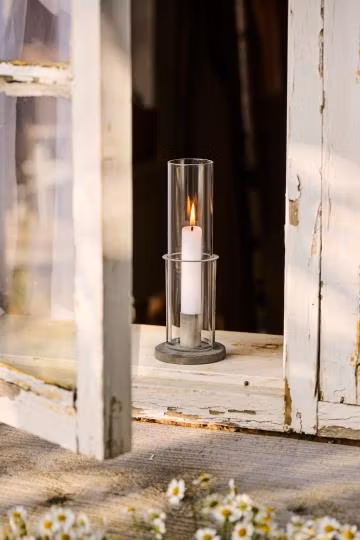 En fantastiskt fin stilren ljusstake i två delar en ljushållare i zink och en glascylinder. Enkelt och stämningsfullt!!