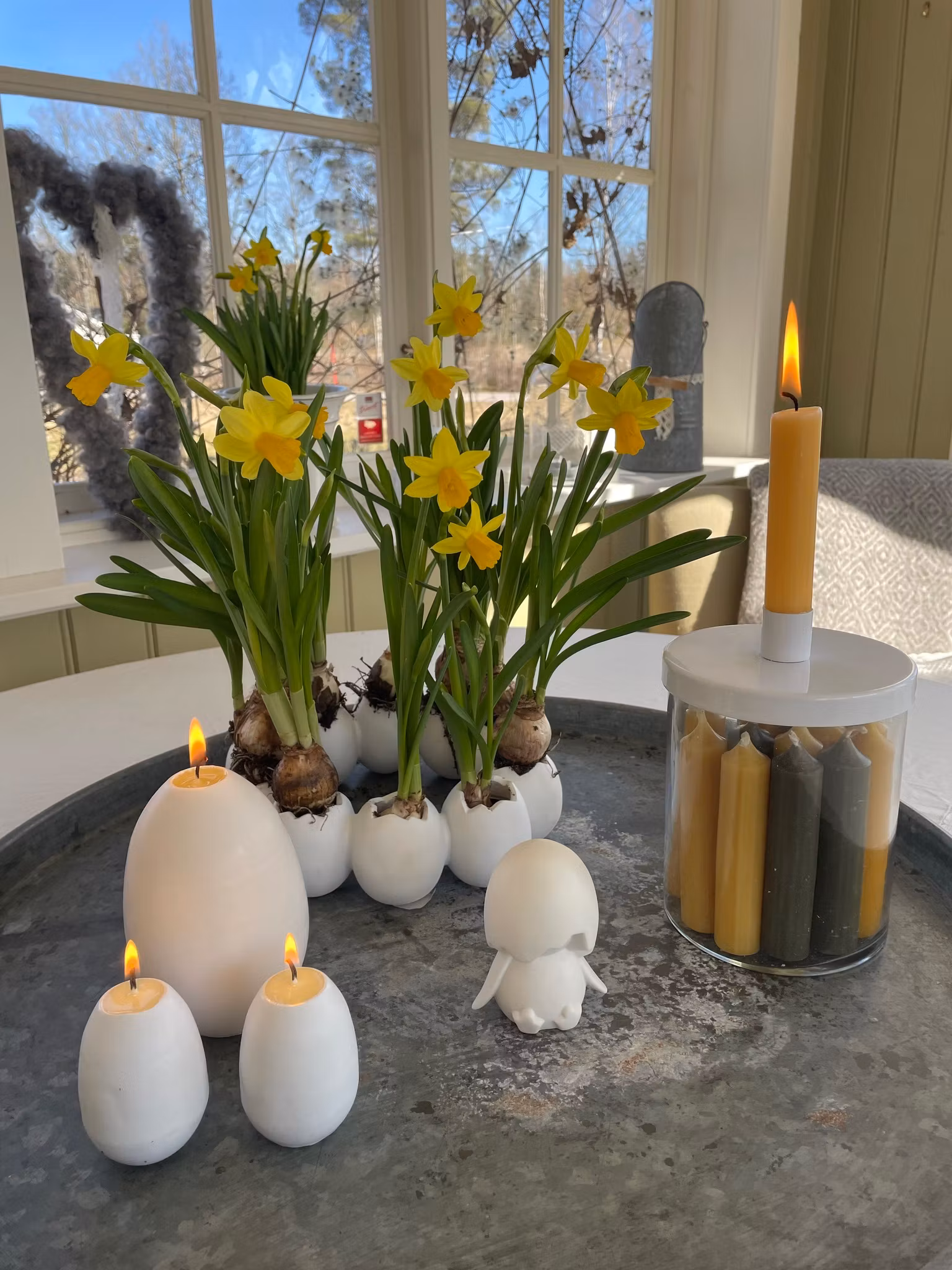 Denna äggkrans passar perfekt som vår och påskdekoration, placera kransen på ett bord eller en skänk och fyll den med vårens söta vårblommor