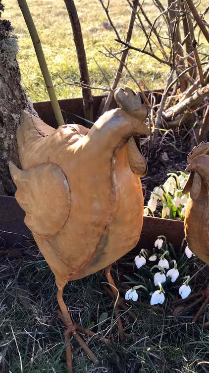En charmig och söt höna i rostig metall för en rustik känsla. Fin både inne och ute, passar fint tillsammans med tuppen eller den mindre hönan i samma serie.