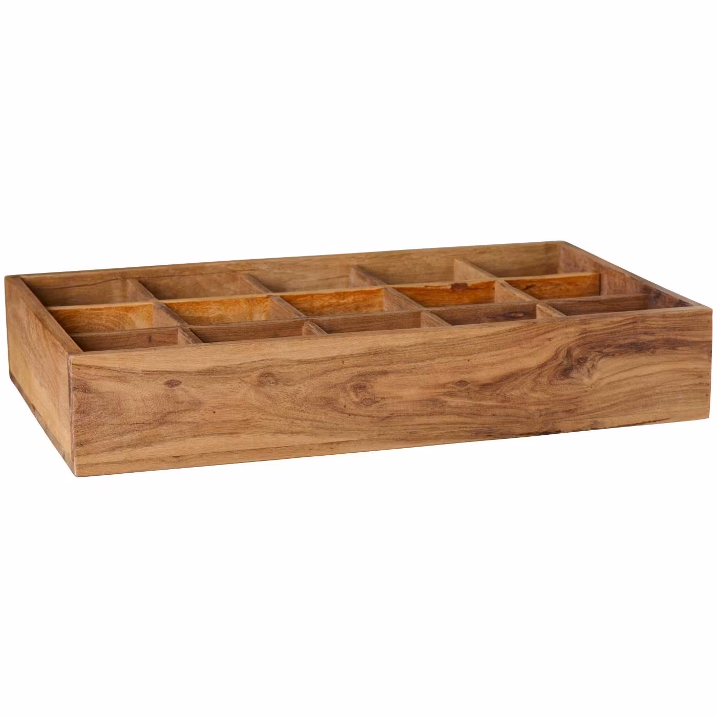 En gedigen, fin och unik gammal trälåda med 15 fack. Perfekt förvaring som ger ditt hem en personlig känsla. Alla exemplar är unika och skiljer sig åt i utseendet.