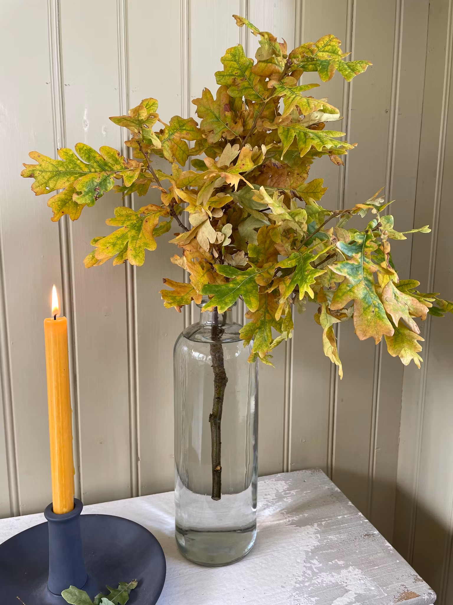 En stilern och vacker flaska i glas. Använd som vas, ljusstake eller ha den stående bara tom den är som en vacker inredningsdetalj.