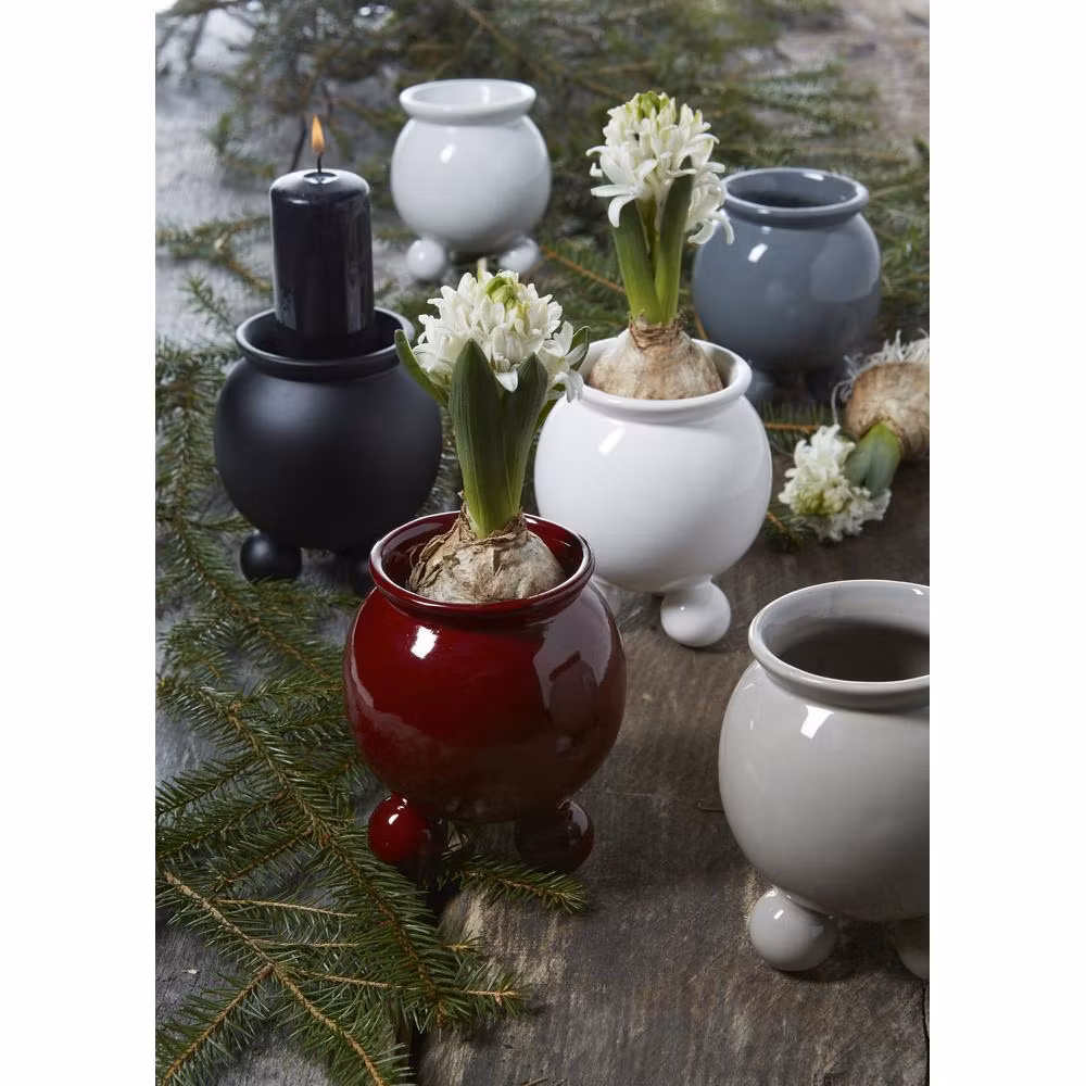Kruka i stengods med form av den klassiska röda kulljusstaken. Ger en härlig gammaldags julkänsla med mycket nostalgi. Kan också användas till blockljus.